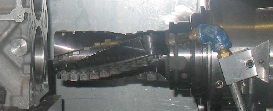 Welcome. This issue’s cover photo is a still from yet another test video, this one of a machining operation on the inside of an aluminum sleeve with a thermally sprayed steel coating. This was part of the production implementation work for the thermally sprayed bores in the engine(s) in your Mustang and/or F-150. One of the problems was machining the bores to final dimension, because the coating material is hard and abrasive and tears up conventional tools. As the project’s assigned tooling resource, I was asked to come up with something that might work. In this image I was using a large corncob-type cutter slightly smaller in diameter than the bore to side mill the coating. The cutter had multiple peripheral cutting edges and moved in a circular path as it advanced in steps down the bore. Due to the hardness of the coating, the layers sheared off absorbed a lot of energy and glowed bright yellow from retained heat. So it was always a big day when we milled some sprayed bores and threw sparks and streamers all over the inside of a particularly skittish and temperamental machine. We ultimately put something much less spectacular in production.